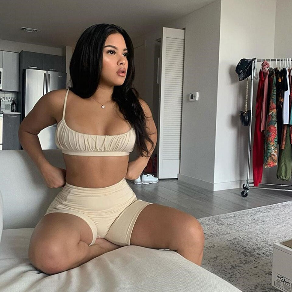 2 Pcs Women Sexy Fashion Set Summer Chic Shinny Tracksuit Casual Outfits